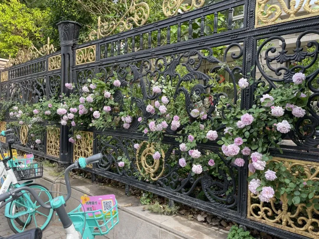 四是“唐诗壁画”。听取居民建议,在太阳鸟儿童游戏角旁侧,绘制唐诗壁画。在居委帮助下,向居民区征集唐诗投票,王之涣《登鹳雀楼》和孟浩然《春晓》当选。组织画师指导小区多名少儿参与绘画、题写诗句。在画师因与第三方公司报酬纠纷表示欲毁壁画时,果断处置,防患未然。五是月季花墙。协助志愿者,在垃圾房两侧加种多种藤本月季、在北石皮弄一侧围墙试种藤本木香。组织保安、保洁协助浇水,观察生长情况,感受生长环境,摸清补种底数。利用五个周末时间,会同绿化师傅对月季重新分枝固定。经过一年多观察,鉴于阳光和土壤条件,预计月季花墙计划需要持续实施3—5年基本稳定。