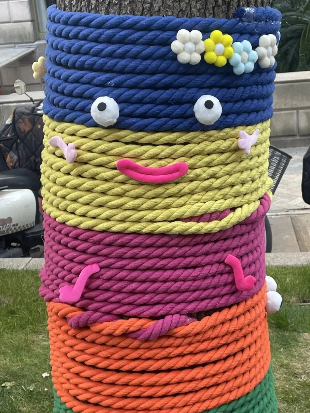 七是“大树时装”。在热心业主和居委配合下,邀请小区的小朋友们一起动手,将儿童角大树披上彩色“外套”。