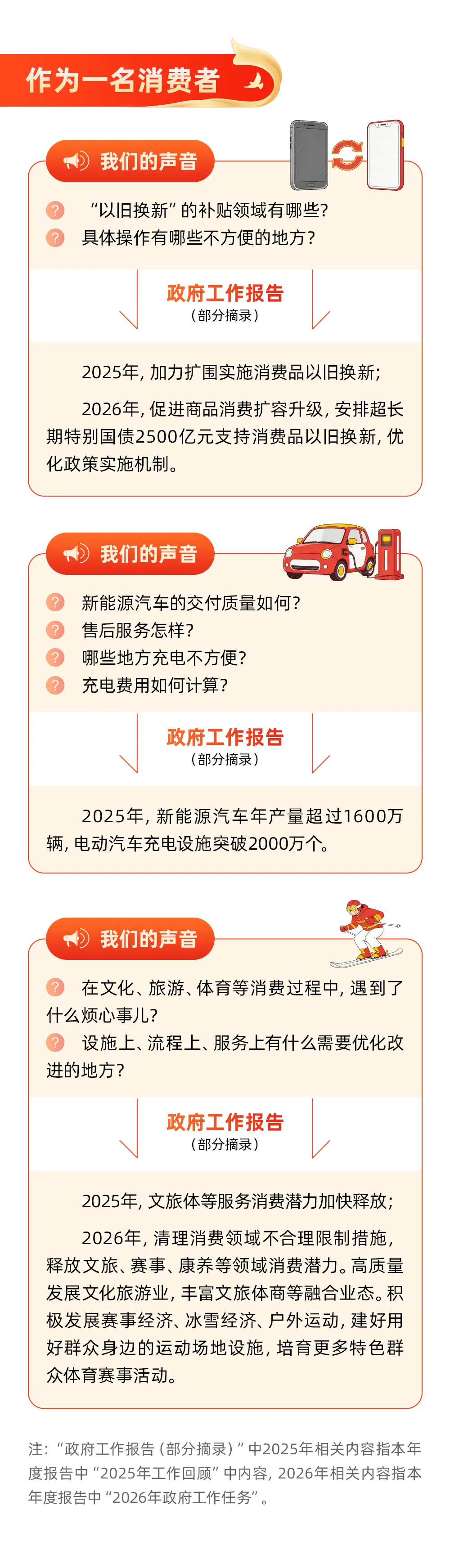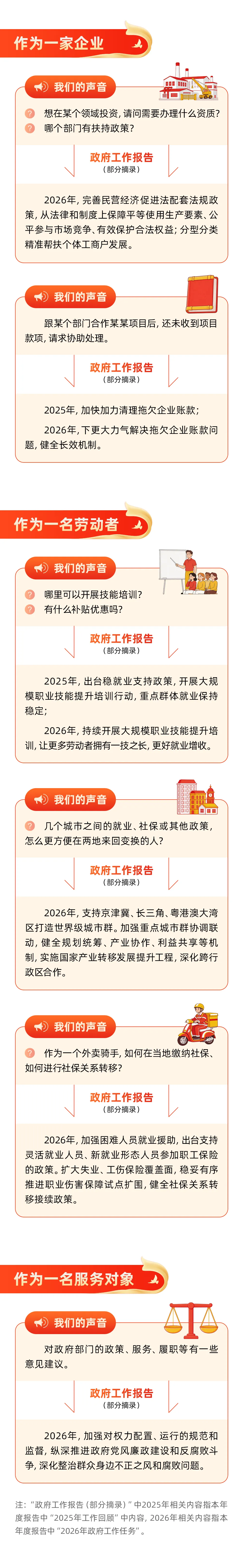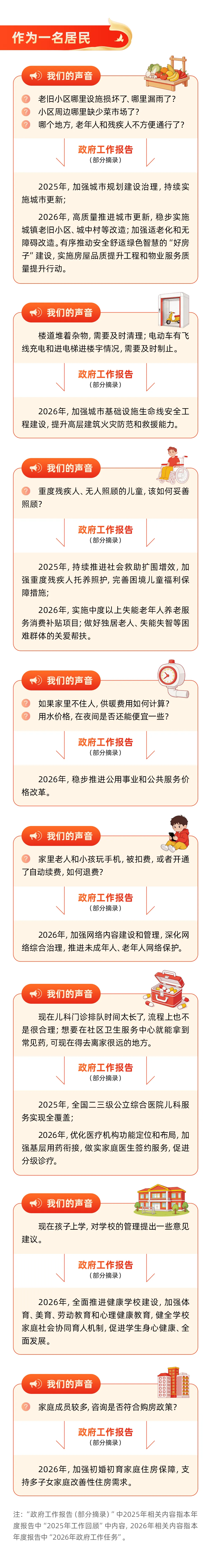看到了吧,这些声音,看似是一件件“小事情”,但因为与经济社会发展、民生保障息息相关,在“民生为大”的政策价值取向下,就变成了一幅“民生大图景”从而在《政府工作报告》中有所体现。