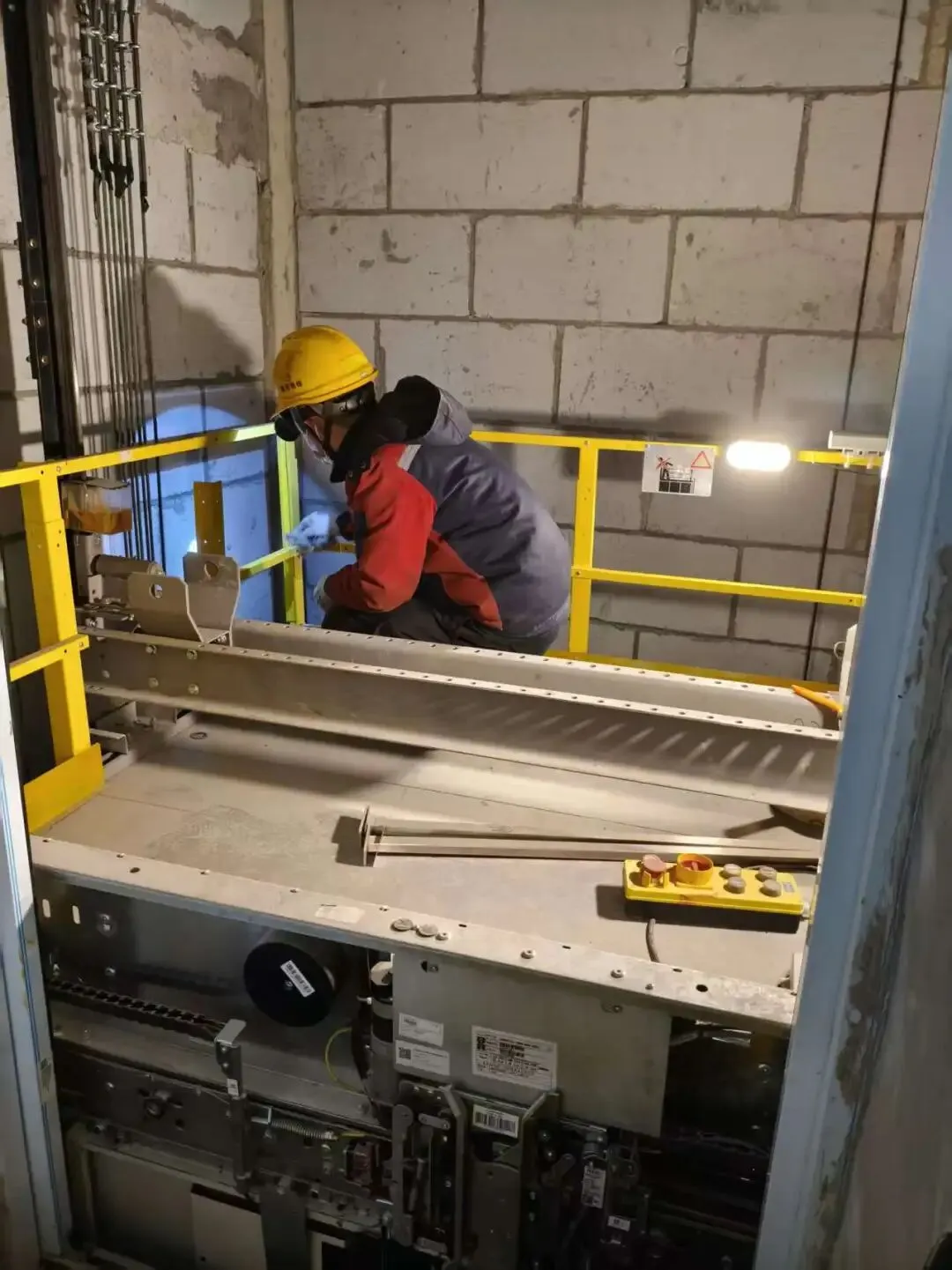 2、推行“以养代修”理念,建立多层级养护制度,涵盖日检、周检、半月检、月检、季检、半年检及年检。重点清洁厅门/轿门地坎、更新老化配件,并专项治理钢丝绳断股等隐患,有效延长设备寿命。