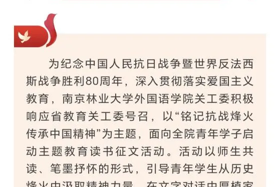 7月,策划开展“铭记抗战烽火,传承中国精神”主题征文活动,鼓励学子以文字抒发爱国之情,感悟中国精神的时代内涵。