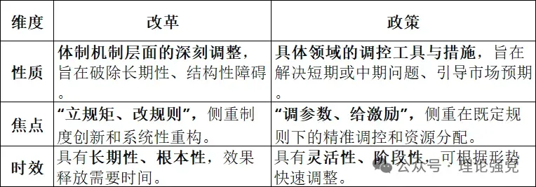 强化改革举措与宏观政策协同,这句话是啥意思呢?简单说,就是要让“改革”这一系统性工程与“政策”这一具体工具,在目标、节奏和效果上形成“1+1>2”的合力,避免相互脱节甚至抵消。我们来简单对比下二者:
