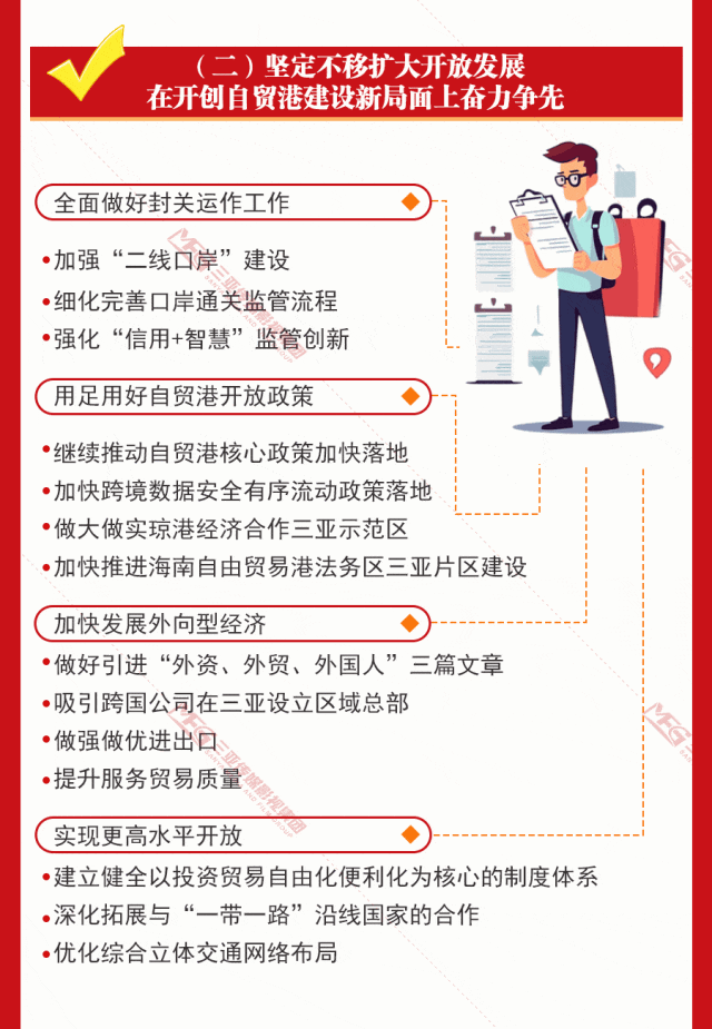 1月8日上午,三亚市第八届人民代表大会第六次会议隆重开幕。市长陈希代表市政府向大会作政府工作报告。2024年,三亚主要做了哪些工作?2025年,三亚将重点抓好哪些工作?“便携版”政府工作报告一图带你读懂。