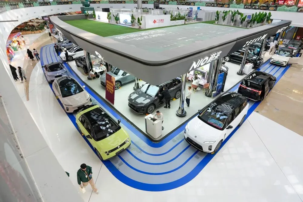 市民在北京市朝阳区一家商场内了解新能源汽车。新华社记者 鞠焕宗 摄