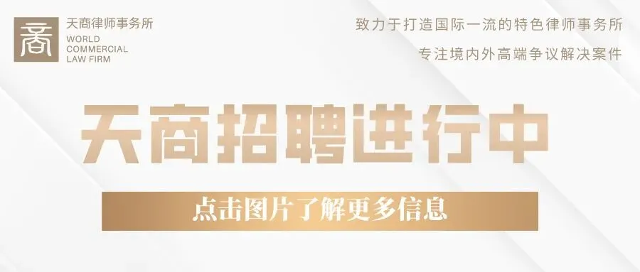 本微信公众号所发布的文章仅代表作者个人观点,不得视为广东天商律师事务所及其成员所出具的任何法律意见或建议。如需引用请注明出处,未经授权不得转载。如有任何问题,请与本所联系,谢谢!
