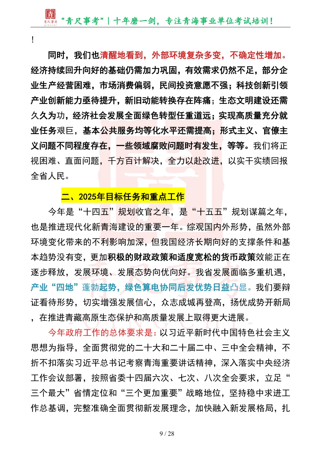 >工作报告-004丨2025年青海省政府工作报告