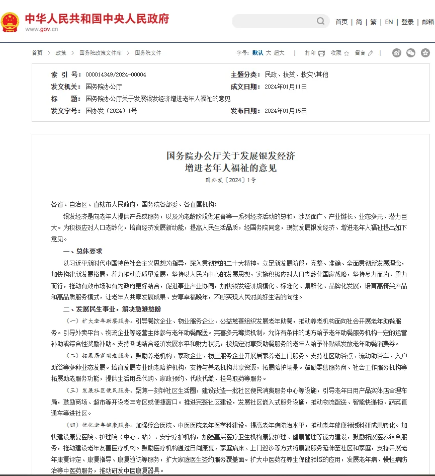 《2026年国务院政府工作报告》明确指出,要“积极开发老年人力资源,制定推进银发经济高质量发展的措施,完善老年用品产品、养老金融、旅居养老等支持政策。”