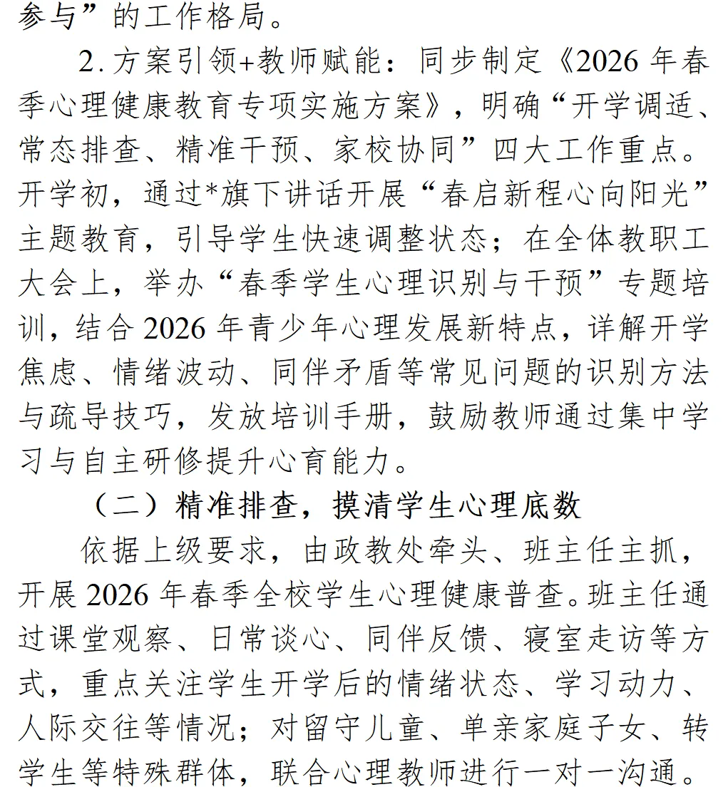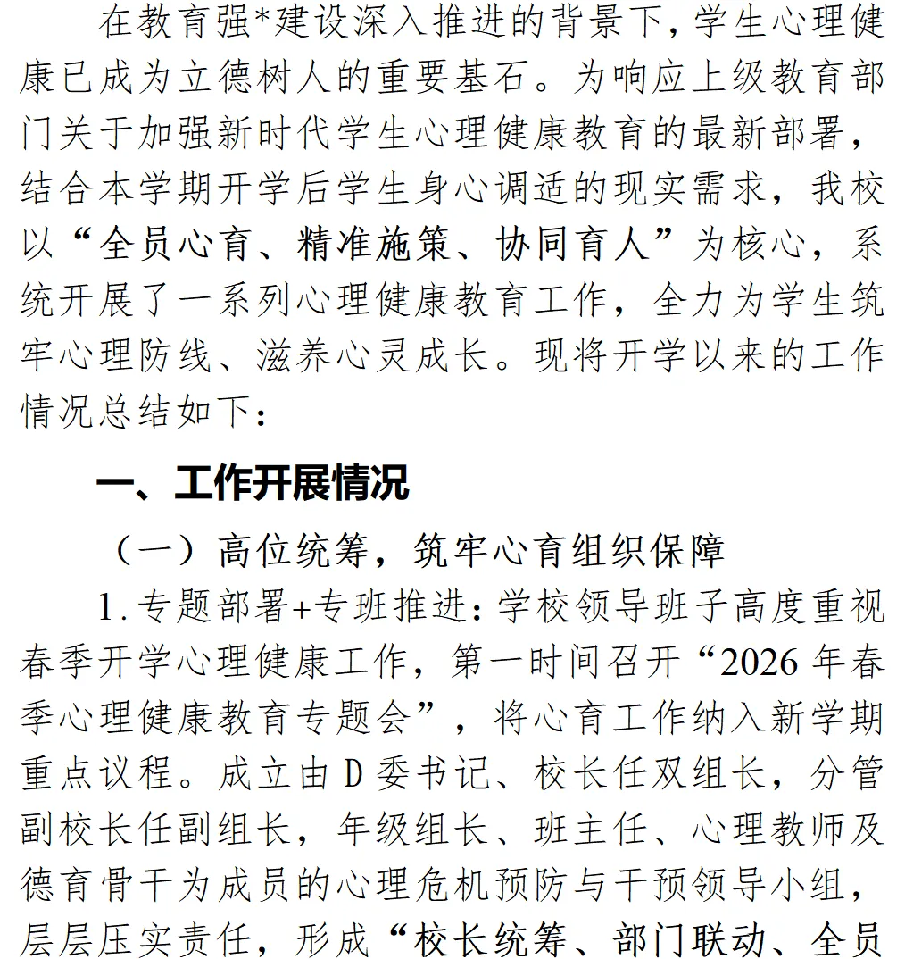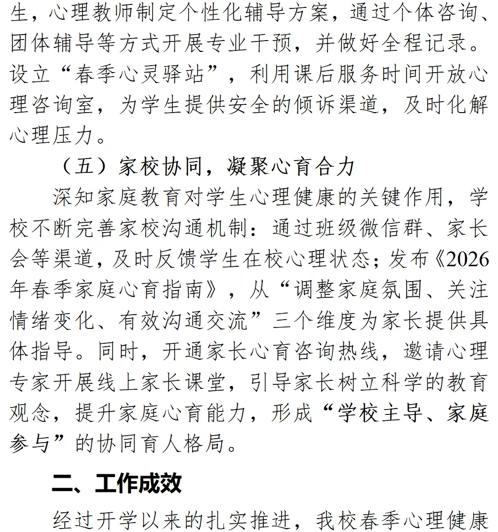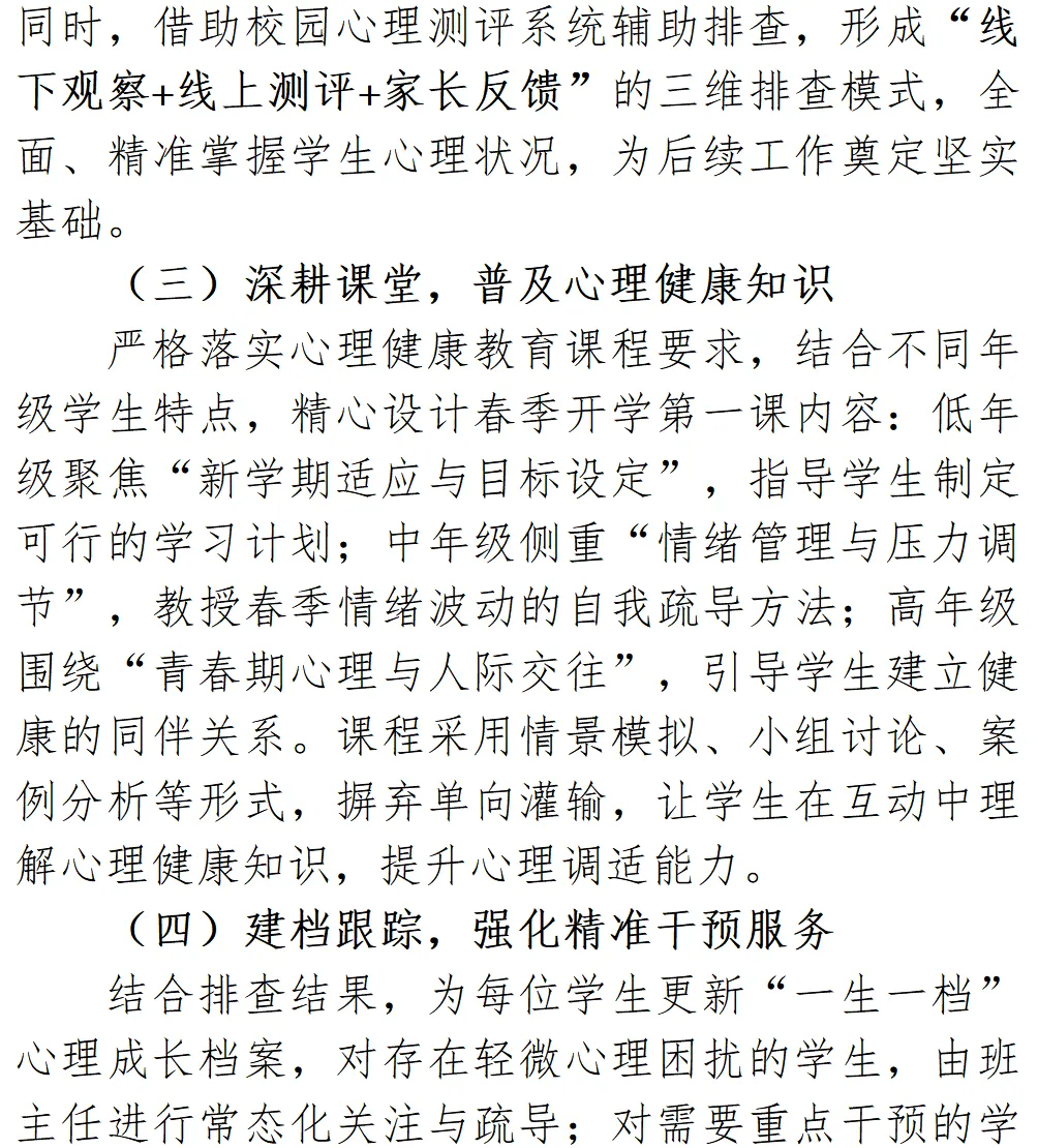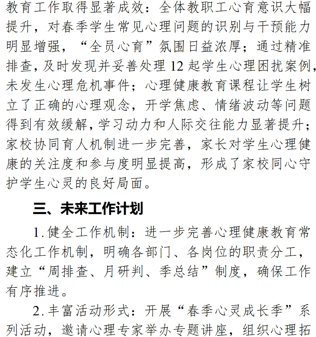 春季学期开学心理健康教育工作报告:春润心灵向阳生长