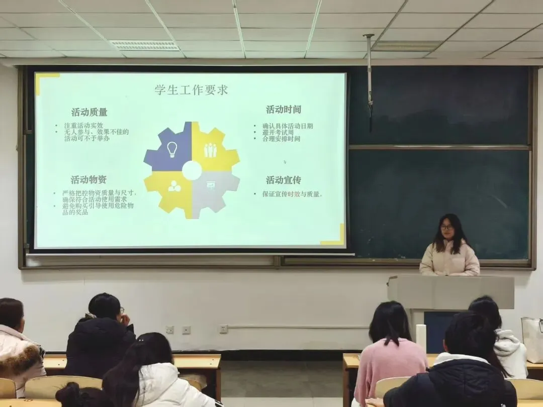3月18日晚,为系统回顾过去一学期的工作成果成效,科学规划新学期的发展蓝图,进一步增强学生组织的内部凝聚力,文经学院学生会工作总结与学期计划会暨团建活动在教学一区A206顺利开展,学生会全体成员参加了本次活动。