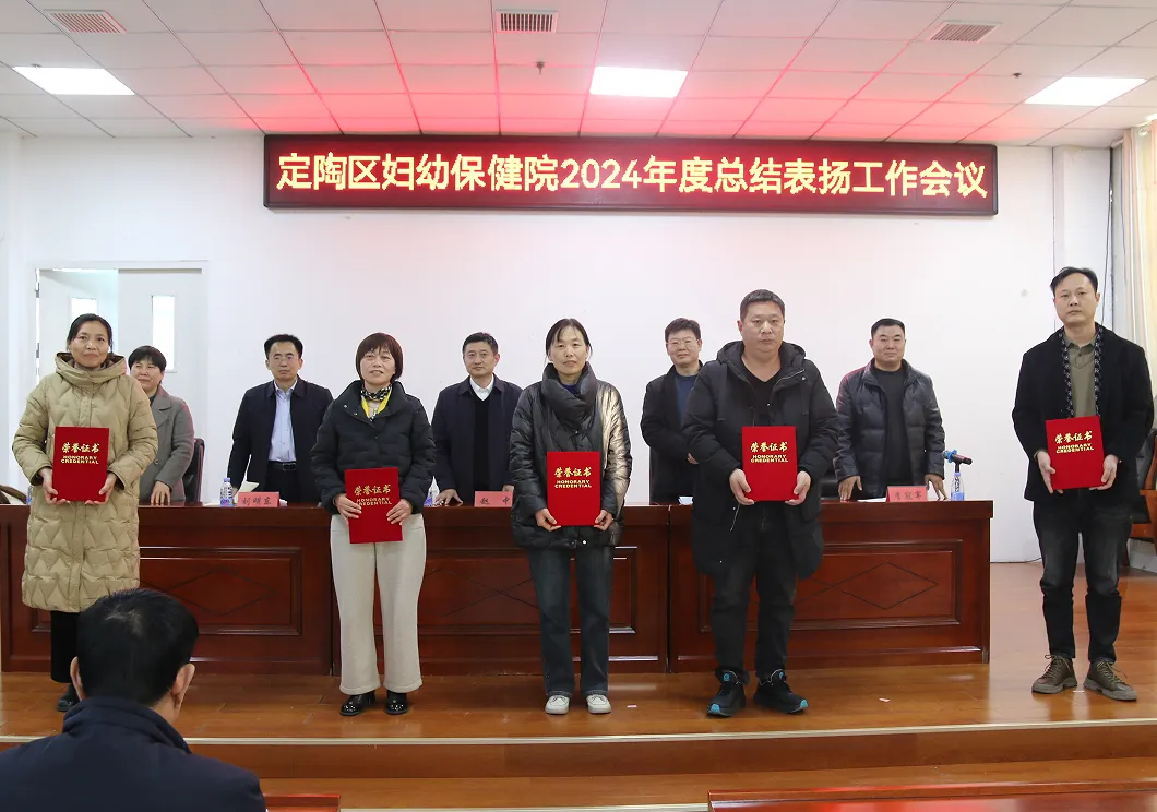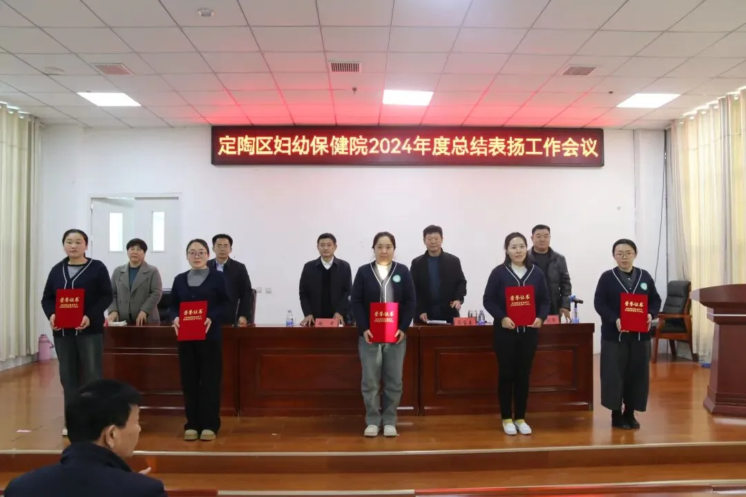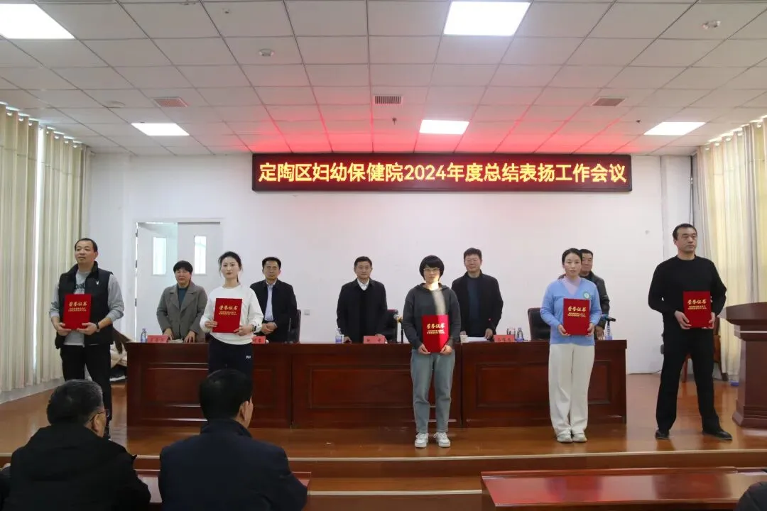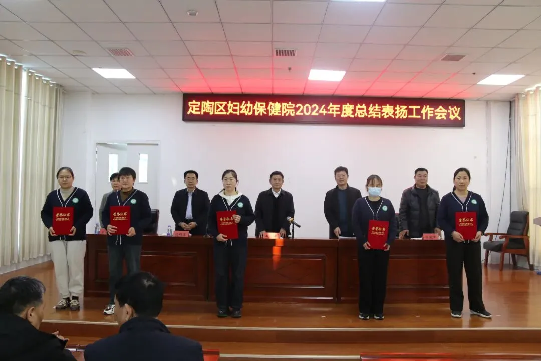 2025年2月8日下午,定陶区妇幼保健院召开2024年度工作总结暨先进表扬工作会议。会上回顾总结2024年工作开展情况,表扬2024年度涌现出来的先进集体和个人。区卫健局党组书记、局长,定陶区妇幼保健院党总支书记刘明东,院长马宝春及院领导班子、先进代表等干部职工参加会议。
