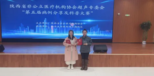 在陕西省非公立医疗机构协会超声专委会“第五届病例分享及科普大赛”中,延安市博爱医院超声科凭借扎实的专业功底与生动的科普表达,在科普组我院功能科郝文亚和崔嫒嫒斩获三等奖。这份荣誉,是对超声科普工作的肯定,更是我们继续深耕专业、服务大众的动力。未来,我们将以更严谨的态度、更温暖的方式,让超声知识走进更多人心中。