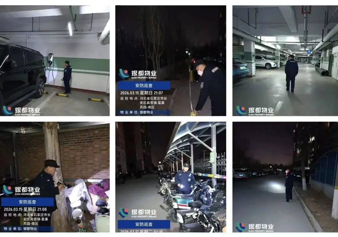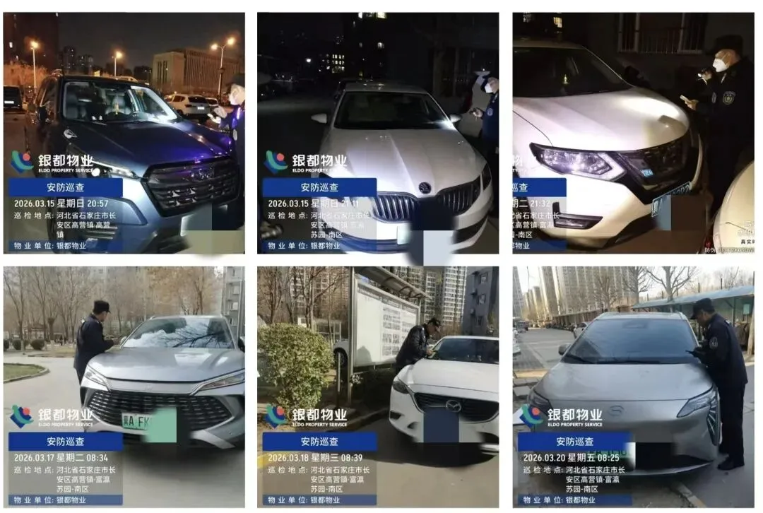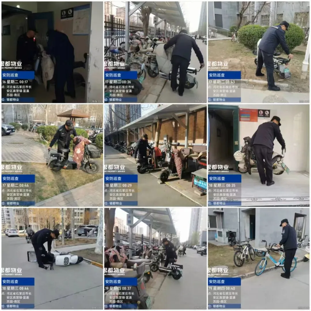 秩序维护员每日进行巡查工作,全面整理园区非机动车,张贴安全标识,维护园区消防设施设备。