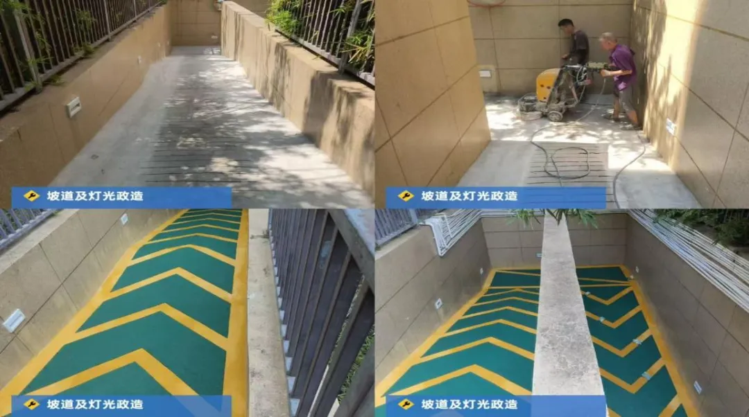 :8月针对小区非机动车库坡道易滑问题,采用金刚砂材质完成坡道升级改造,增强地面防滑性能,降低业主骑行滑倒的安全风险.居住品质是小区业主幸福感的核心来源。业委会时刻抓牢业主对小区高品质的追求,从环境绿化、公共管道、配套设施等多个维度,督促物业落实服务承诺,并重点跟踪督办了小区道闸改造、小游园品质提升两项重点工程,有效提升了小区整体品质。