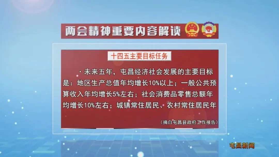 ·未来五年,屯昌经济社会发展的主要目标是:地区生产总值年均增长10%以上;一般公共预算收入年均增长5%左右;社会消费品零售总额年均增长10%左右;城镇常住居民、农村常住居民年人均可支配收入年均分别增长10%、11%左右;城镇化率达到52%左右。