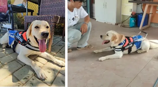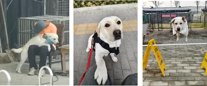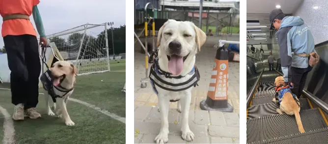 部分优秀的狗狗已进入实地带路练习,为后续适配视障者做足准备,预计2026年将免费为4位盲人适配专属导盲犬,帮助他们打破出行障碍,平安出行;