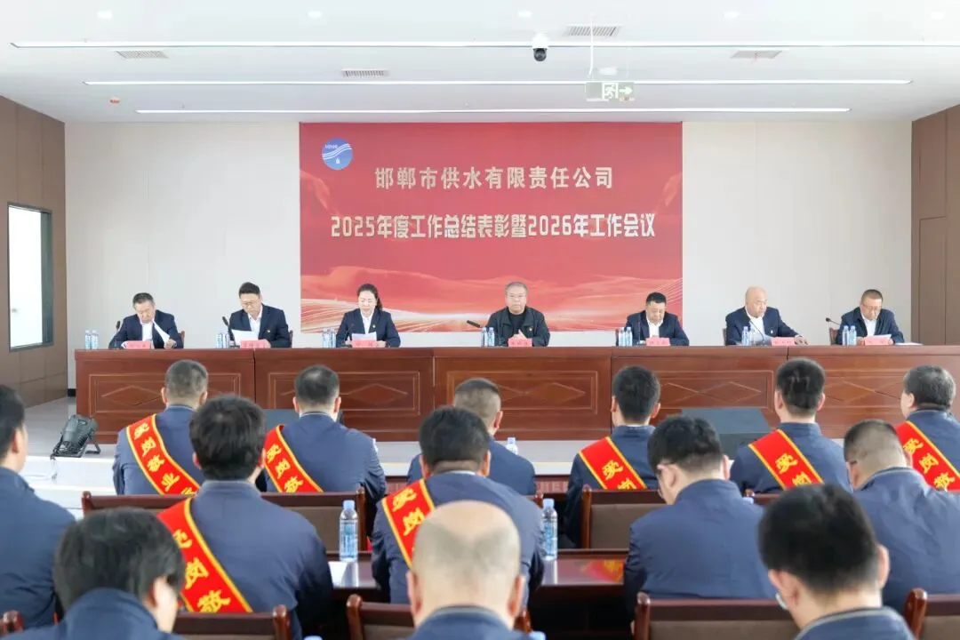 公司党委书记、董事长张瑞康代表公司党委和领导班子,向受表彰的先进集体和个人表示热烈祝贺,向辛勤耕耘、团结奉献的全体干部职工致以衷心感谢。他强调,2026年机遇和挑战并存,要以国家出台的《供水条例》为契机,紧紧围绕提升核心竞争力这一主线,主动作为,力求突破:一是积极推进供水设备设施提升改造,争取国债资金,抓好人才梯队建设;二是从提高水费回收率、开展供水分区计量、减低能耗药耗、推行新能源、执行特行水价等方面入手,降本增效提效益;三是做强三产增营收,各个三产单位要聚焦核心业务,市场化运作,不断提升市场拓展和竞争能力;四是以党建引领促全局,把党建和业务工作深入融合,并加大正面宣传力度,从严管党治党,为各项供水工作顺利开展保驾护航; 五是统筹城乡供水资源,助力城乡水务一体化发展,建立服务标准统一的城乡供水一体化新格局。