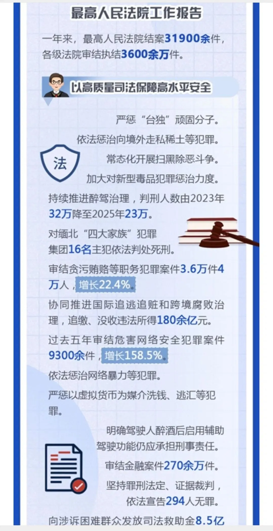 2025年各级法院依据罪刑法定、证据裁判,无罪判决294人,