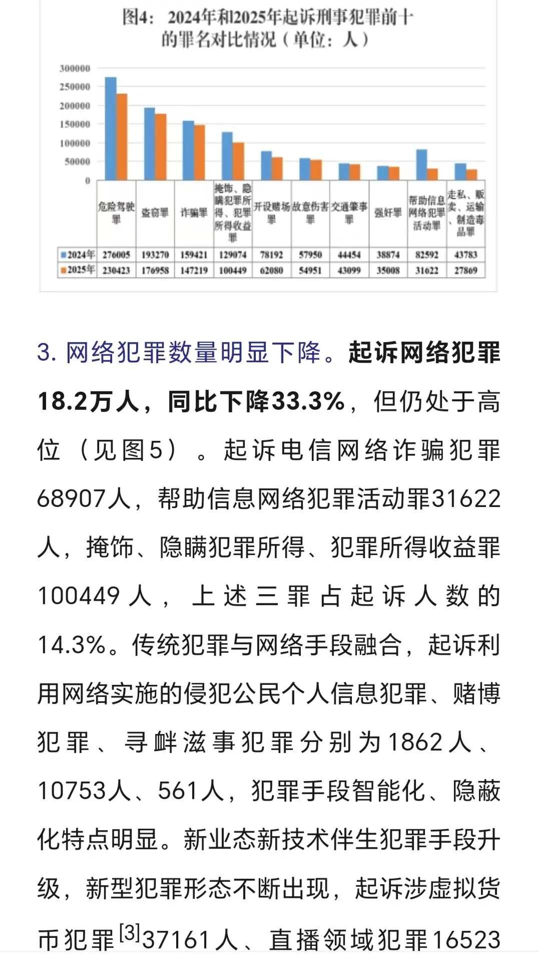 综观今年两高报告及2025刑检工作白皮书,总体治安向好,刑案数、犯罪人数降低、减少。经济犯罪有13.7万人,侵犯知产1.9万人、职务犯罪有3万零五百人,其中省部级44人。