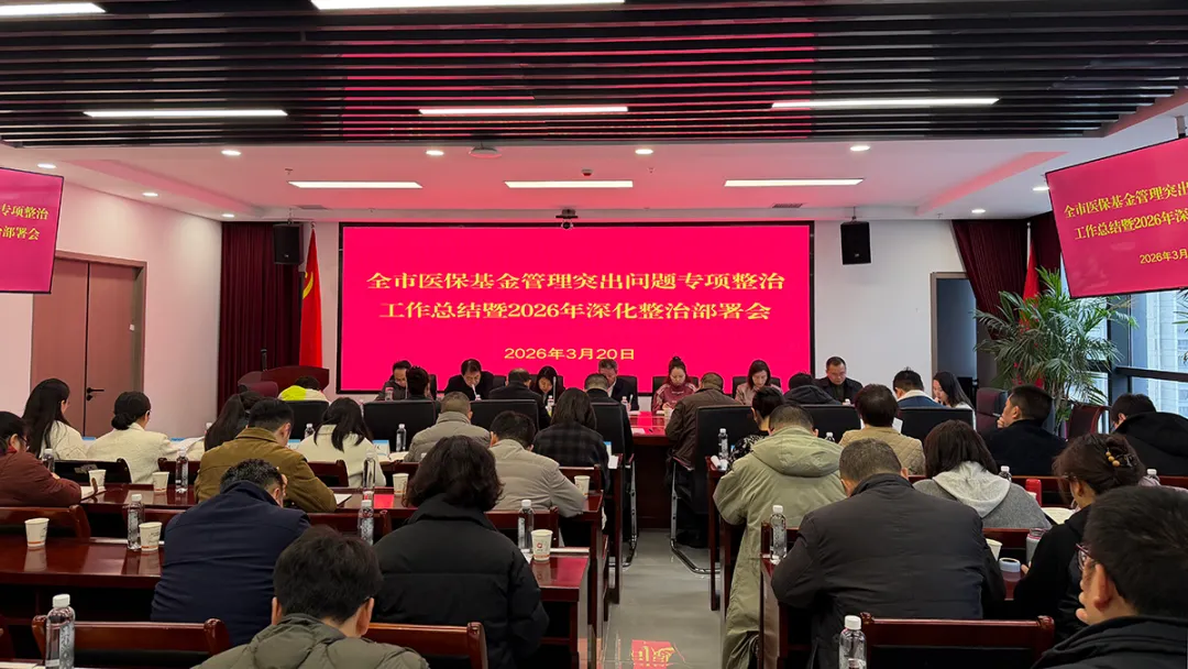 3月20日,全市医保基金管理突出问题专项整治工作总结暨2026年深化整治部署会顺利召开。会议由市医保局牵头组织,全面总结2025年医保基金专项整治工作成效,深入分析当前基金监管形势,对2026年深化整治攻坚决战工作进行系统安排部署。市医保局党组书记、局长金松,市纪委第二监督检查室主任吴利霞,市纪委市监委派驻市卫生健康局纪检监察组组长陆蓉出席会议并讲话,市医保局党组成员、副局长金辛主持会议,市税务局、市卫生健康局相关副局长出席会议。