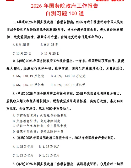 最新版!全年时政热点及1500题(2025年1月-2026年3月)2026年3月10日新更