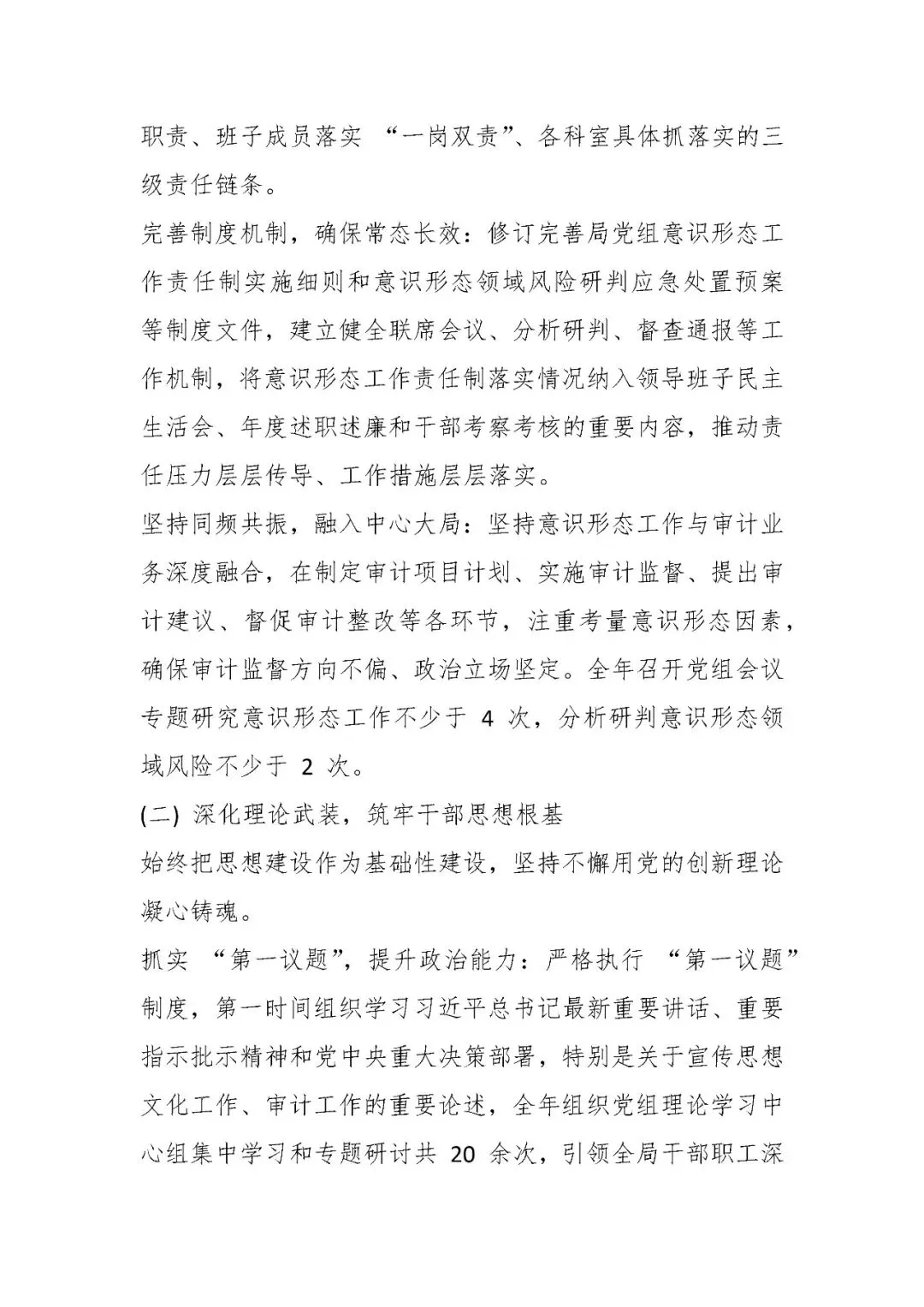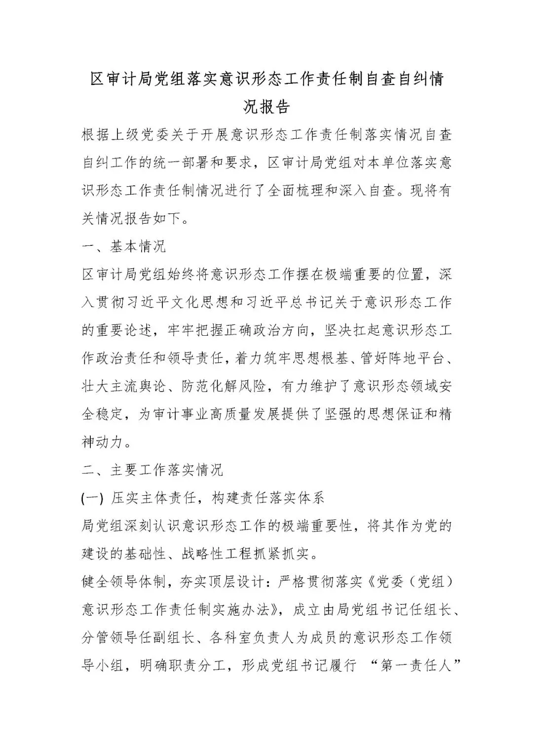 >区审计局党组落实意识形态工作责任制自查自纠情况报告