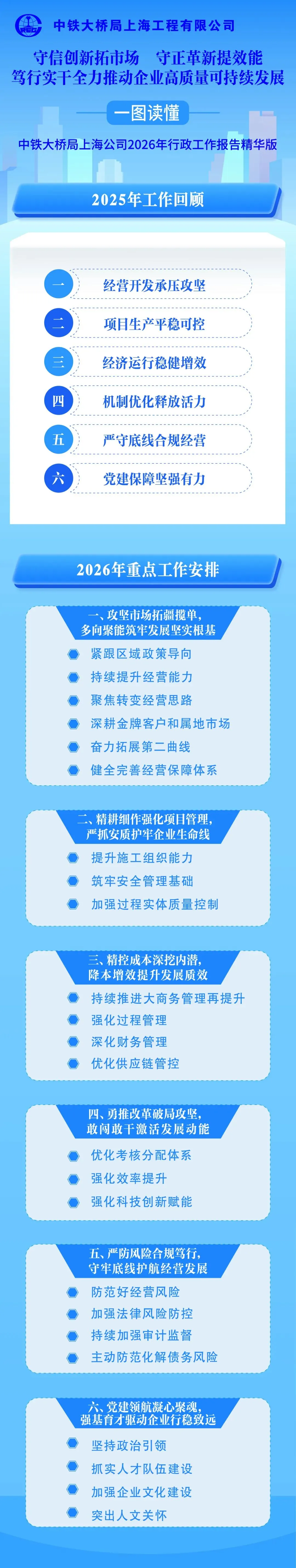 一图读懂|中铁大桥局上海公司2026年工作会暨三届一次职工代表大会党委书记讲话和行政