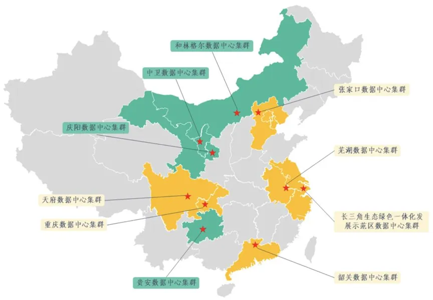 中国的风电和光伏资源主要分布在内蒙古、新疆、甘肃、宁夏等西北省份,而互联网产业、金融、制造业等主要算力消费方集中在京津冀、长三角、珠三角一带。