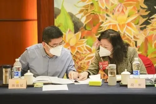 ●市政协委员陈前斌、段虹认真阅读政府工作报告并展开讨论