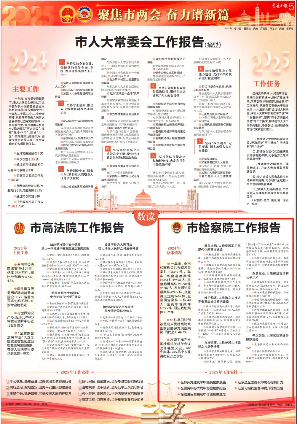 2025年1月22日,《重庆日报》第5版刊登《数读市检察院工作报告》一文,内容如下: