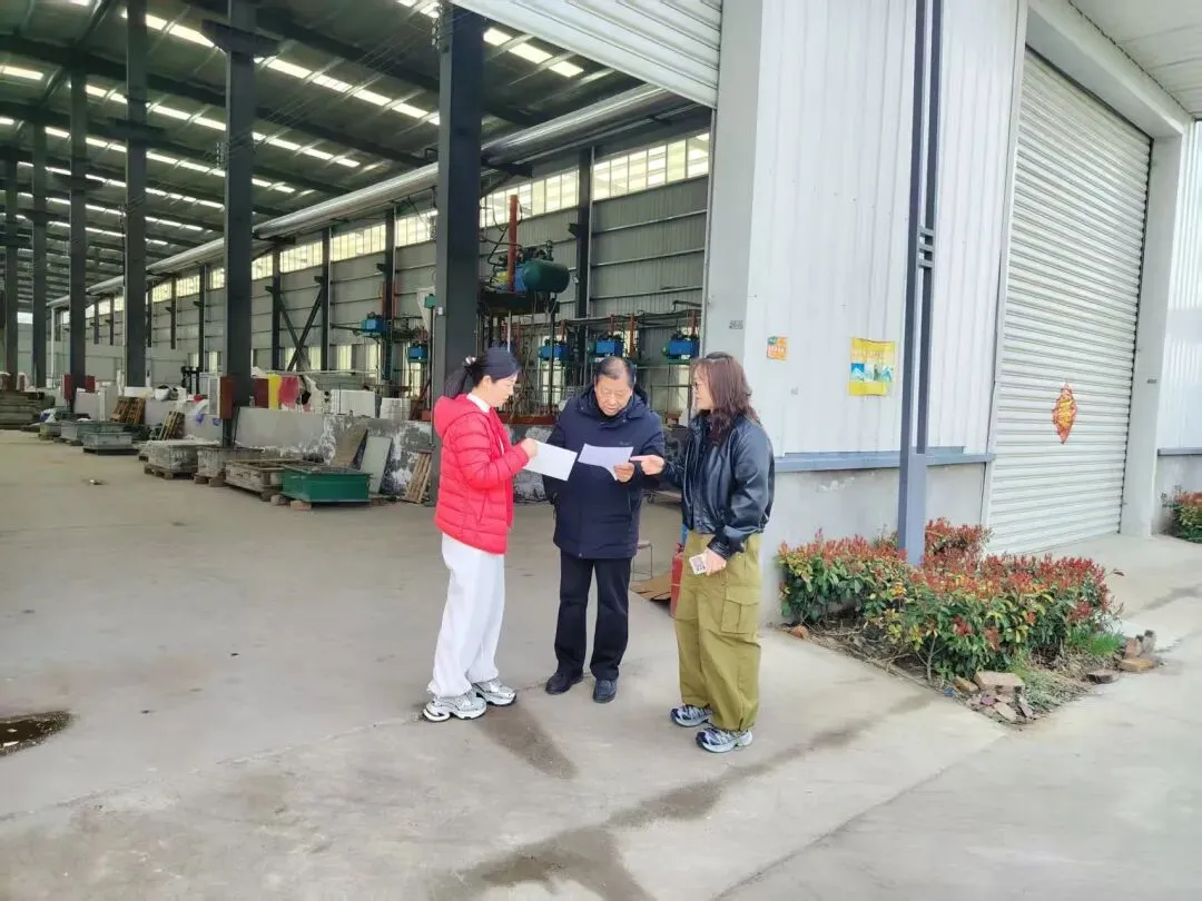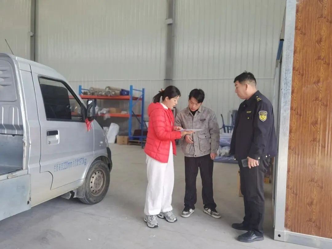 3月19日,孟岗街道主任科员崔庆华、八级职员李英杰督导企业运行、豫企码张贴等重点工作。