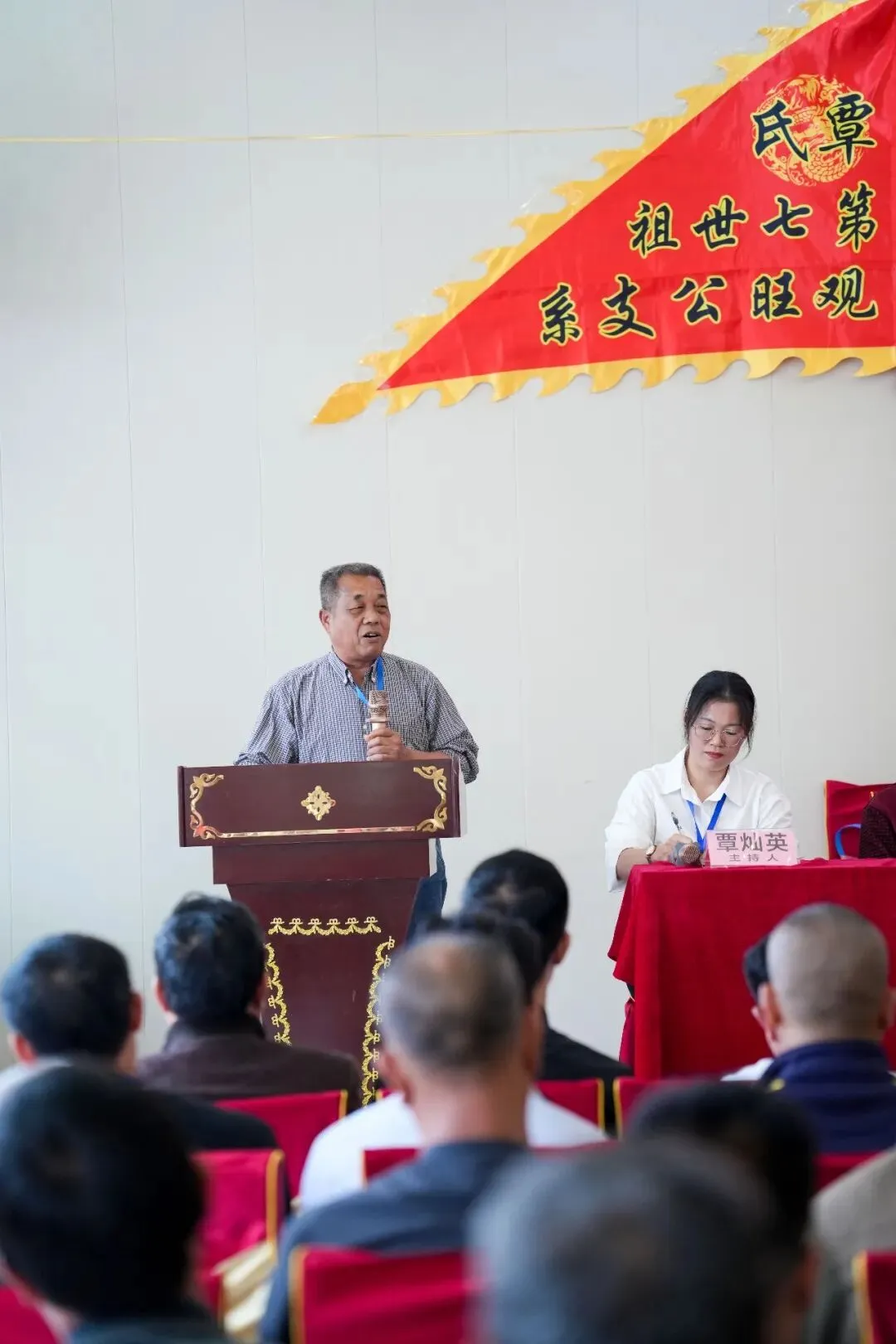 议程最后,祚彬会长作总结讲话,全面回顾了观旺公支系联宗工作的过往成绩,系统部署了未来工作计划,并对今年清明祭拜观旺公相关工作作出具体安排。并在会长通过2026年清明节后二天(4月7日)观旺公统一祭拜方案。并着重指出,目前祖上流传的各类族谱中,均未记载观旺公配偶的墓葬地,寻找其墓葬地成为当前支系工作的重要任务之一,希望全体宗亲群策群力、凝聚各方力量,加快寻找步伐,力争尽快找到,告慰先祖、传承家风。会长的讲话饱含对支系发展的殷切期望,对凝聚宗亲共识、推动支系各项工作提质增效具有重要指导意义。