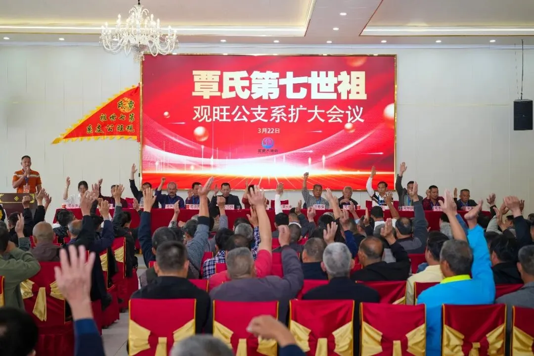 为凝聚宗亲力量、总结联宗工作成效、部署清明祭祖相关事宜,传承家族优良传统,3月22日,观旺公支系联宗工作总结大会暨清明祭祖研讨会的在太平镇金都大酒店顺利召开。覃祚彬会长、各位副会长、委员及全体宗亲代表等140人齐聚一堂,共叙宗亲情谊,共商支系发展,共话祭祖事宜,会议由覃灿英主持,议程紧凑、内容务实,取得圆满成功。