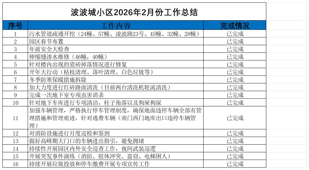 附件1:波波城小区2026年2月工作总结和3月工作计划