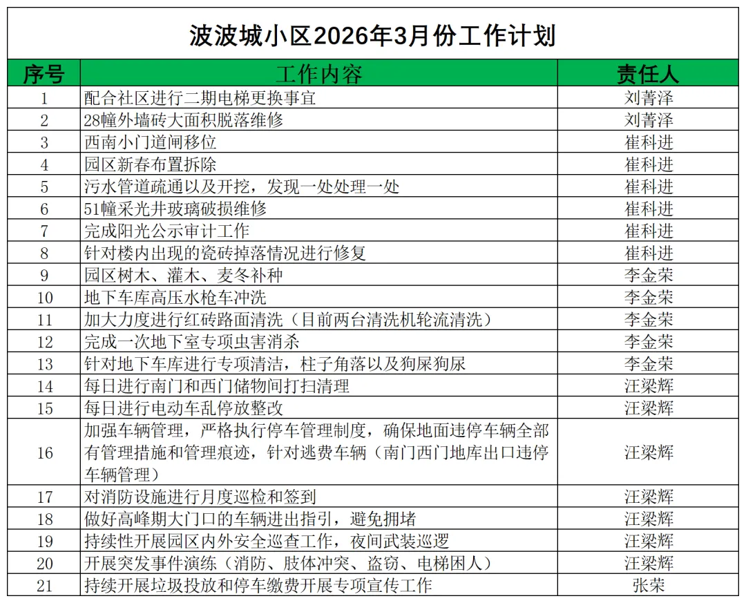 >附件1:波波城小区2026年2月工作总结和3月工作计划