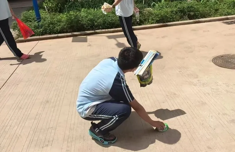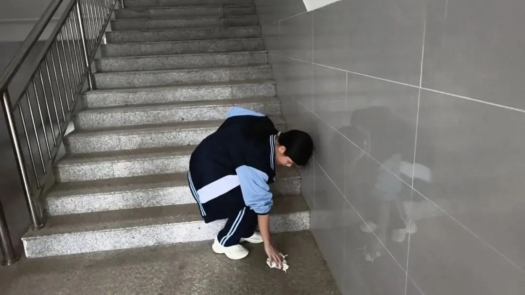 持续开展文明弯腰行动,倡导爱护环境,营造整洁文明的校园氛围。