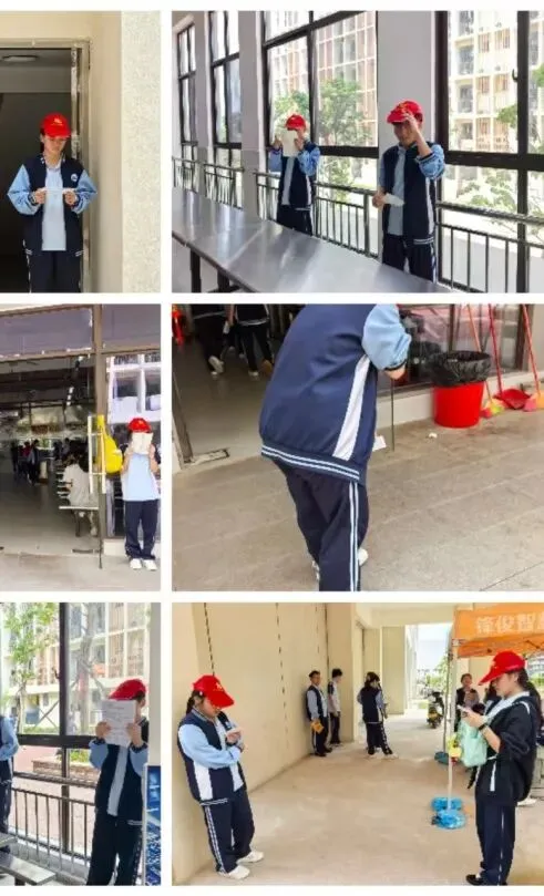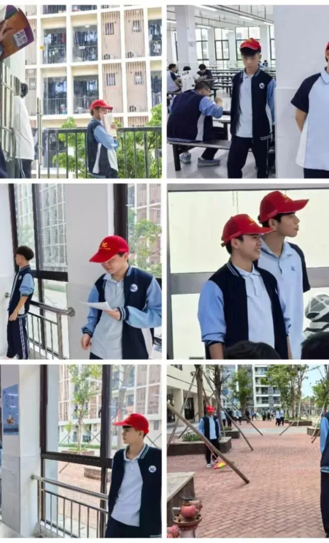 学生志愿者坚守岗位,认真维护校园秩序,展现良好文明素养。