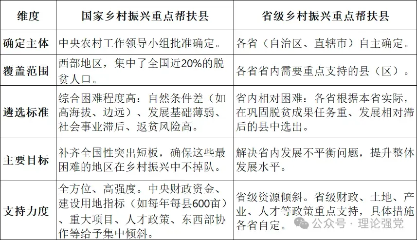 17.乡村振兴重点帮扶县:今年的中央一号文件强调,要分别设立国家和省级乡村振兴重点帮扶县,主要是为了分层分类、精准施策,形成分工协作、全面覆盖的帮扶体系。简单来说,就是国家解决最突出的区域短板,各省聚焦自身特殊的困难地区。