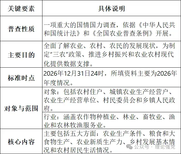 22.第四次全国农业普查:第四次全国农业普查,是我国针对2026年即将开展的一次全国性、大规模的农业、农村、农民基本情况调查,目的是为了全面摸清新时代“三农”(农业、农村、农民)的家底。