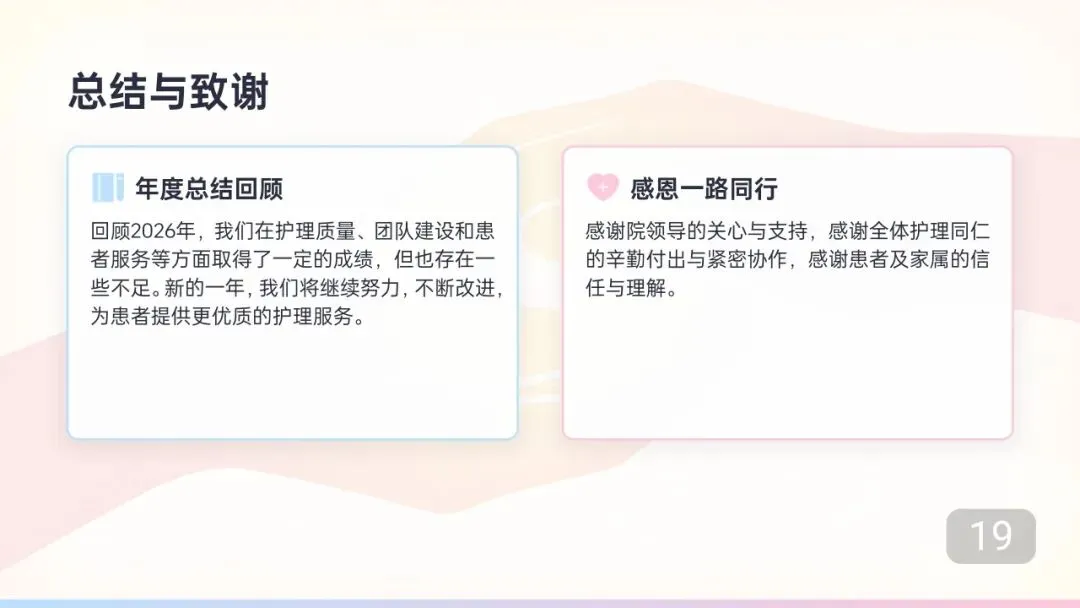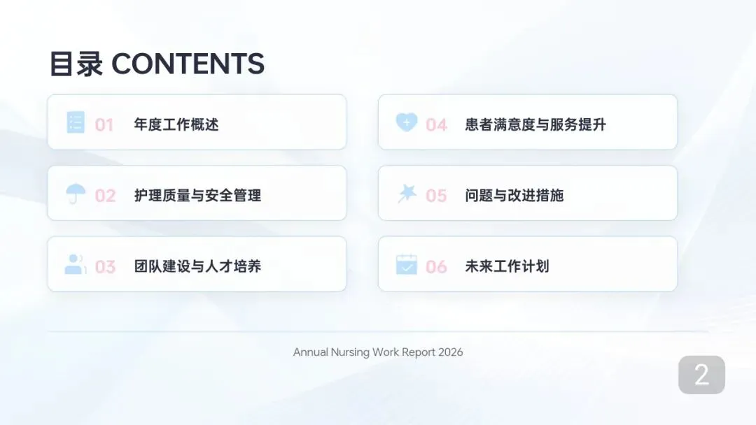 2026年护理工作以患者为中心,围绕质量安全、团队建设、服务提升推进各项工作,取得阶段性成效,同时正视现存问题并制定改进方案,明确2027年工作重点。