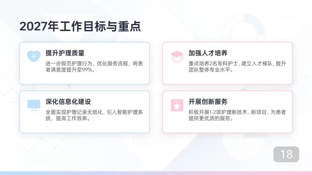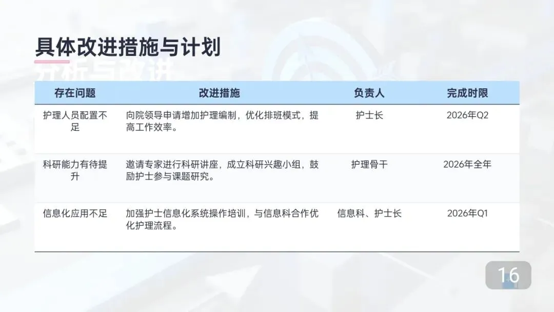 强化人才培养:重点培养2名专科护士,完善人才梯队建设