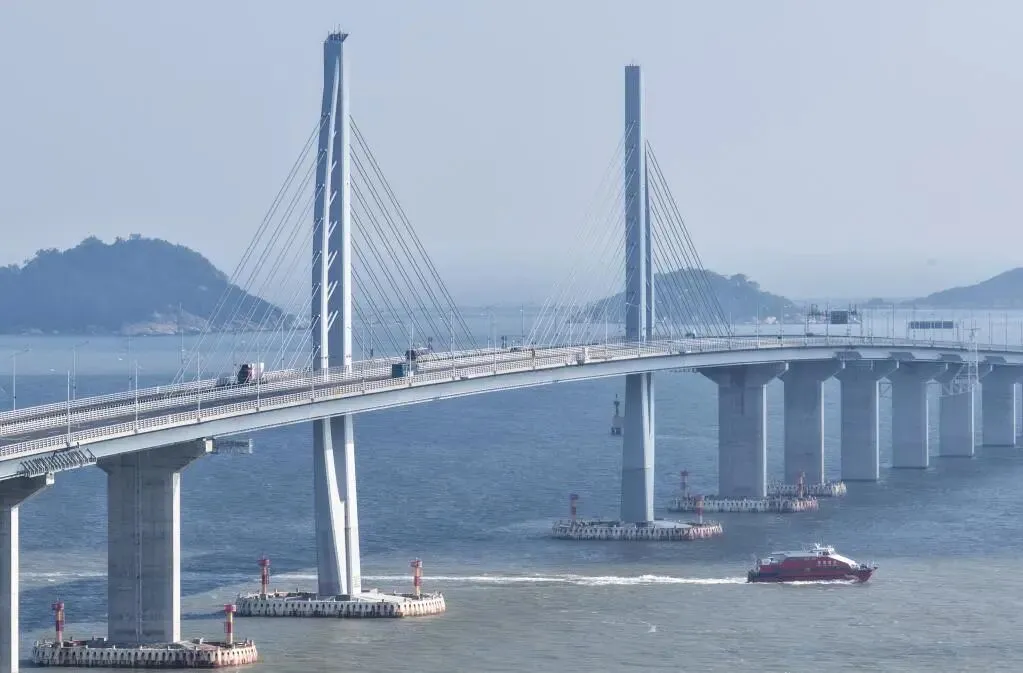 客船驶过港珠澳大桥九洲航道桥(无人机照片)。新华社记者邓华摄