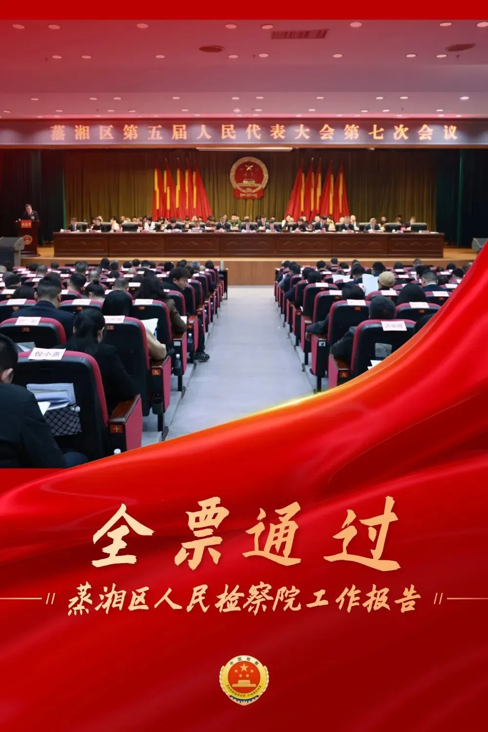 3月22日,蒸湘区第五届人民代表大会第七次会议圆满完成各项议程,胜利闭幕。经表决,会议全票通过了曾庆意所作的《蒸湘区人民检察院工作报告》。