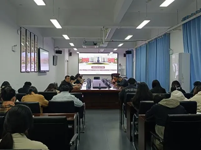 随后,我校副校长王秋宏深入分析当前就业形势并对 2025 届毕业生就业工作进行部署。要求做到精准施策,千方百计稳岗拓岗,着力拓宽就业渠道,做深做细就业指导,用心做好重点帮扶,同时,做好就业数据监测与工作评价,强化学校、企业、社会三方联动,形成就业工作合力。