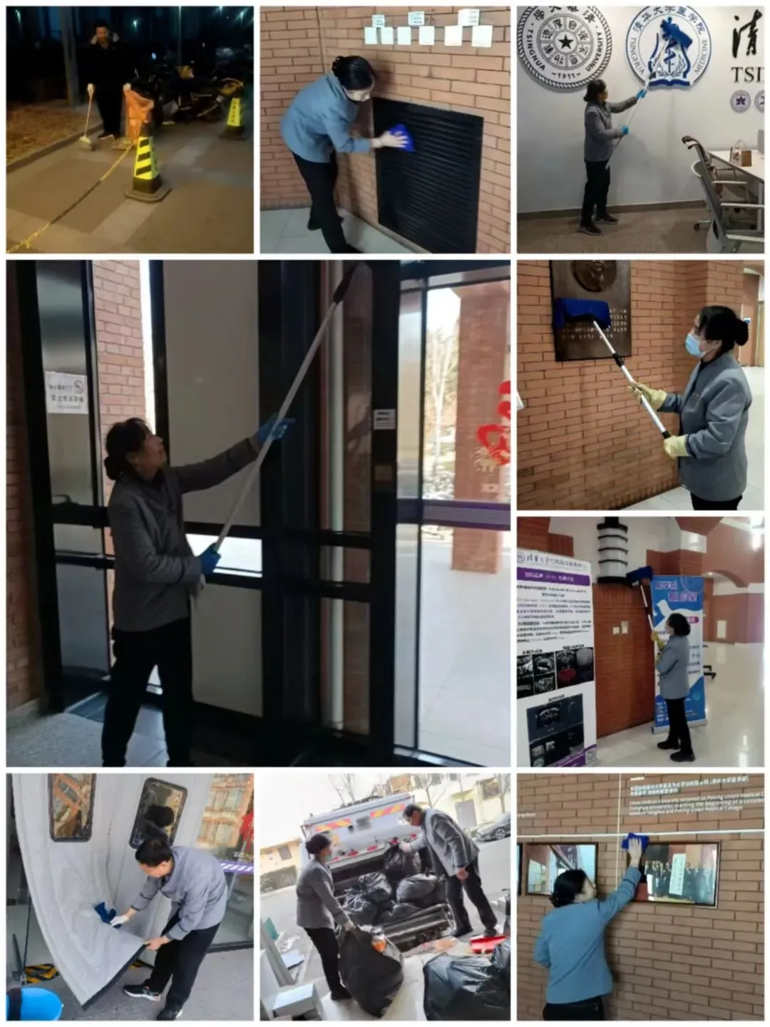 每一位保洁人员始终坚守一线岗位,以常态化清洁守护全域洁净,以全方位消杀筑牢安全防线,以精细化维护打磨环境细节,全力以赴为医学楼营造干净整洁的环境。
