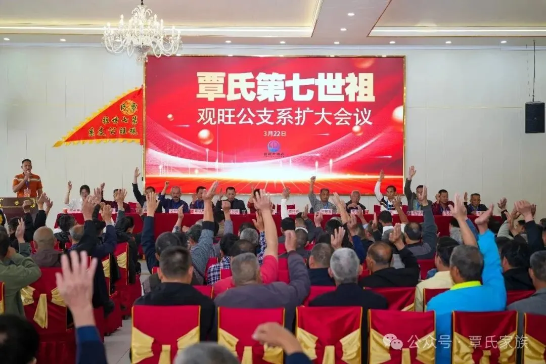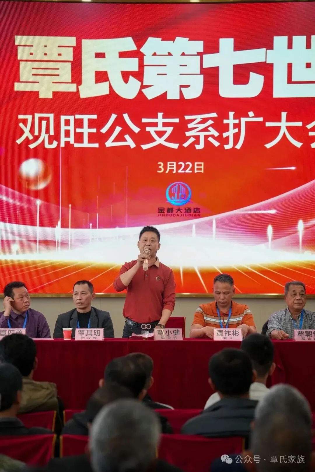 为凝聚宗亲力量、总结联宗工作成效、部署清明祭祖相关事宜,传承家族优良传统,3月22日,观旺公支系联宗工作总结大会暨清明祭祖研讨会的在太平镇金都大酒店顺利召开。覃祚彬会长、各位副会长、委员及全体宗亲代表等140人齐聚一堂,共叙宗亲情谊,共商支系发展,共话祭祖事宜,会议由覃灿英主持,议程紧凑、内容务实,取得圆满成功。