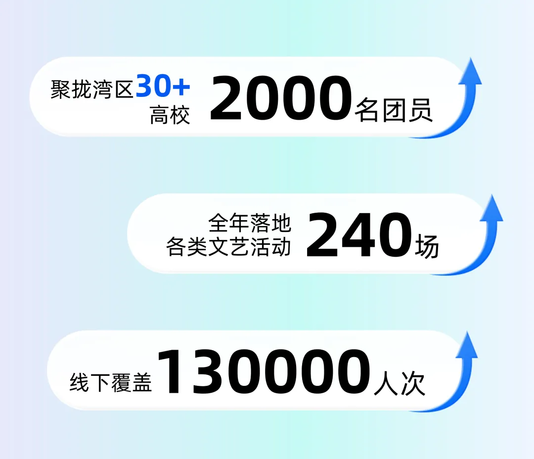 高校合作版图从大学城核心院校,延伸到广东白云学院、广东技术师范大学、佛山大学等湾区内三十多所知名高校,全年输送上万人次参与活动,推送140+音乐人登上更大舞台。