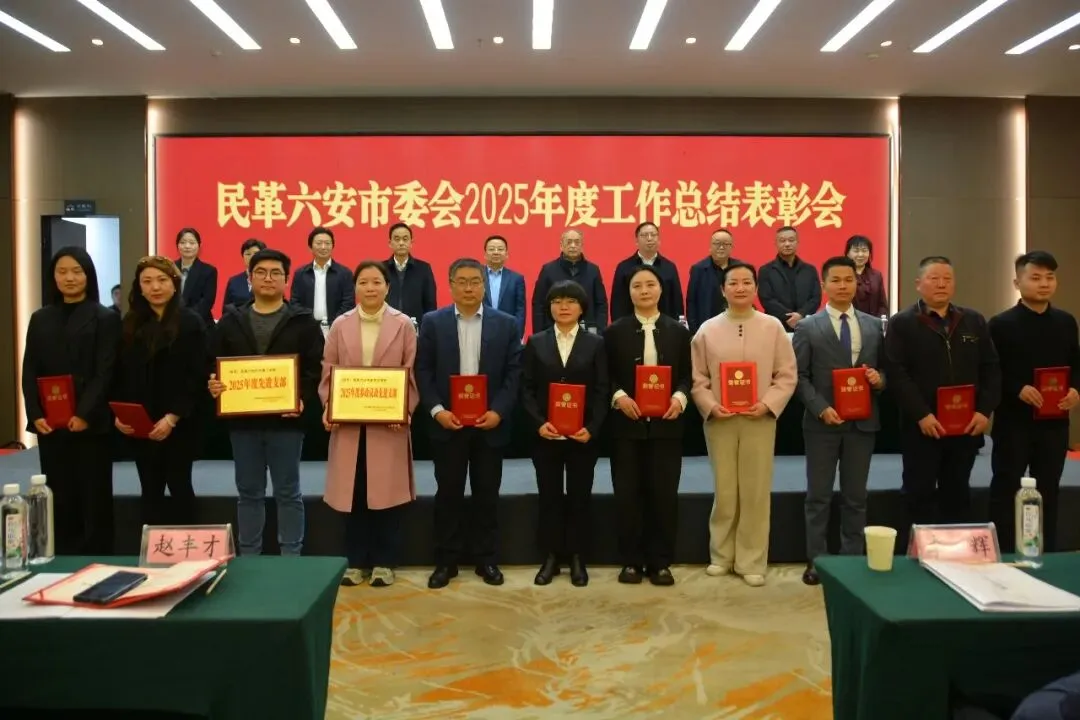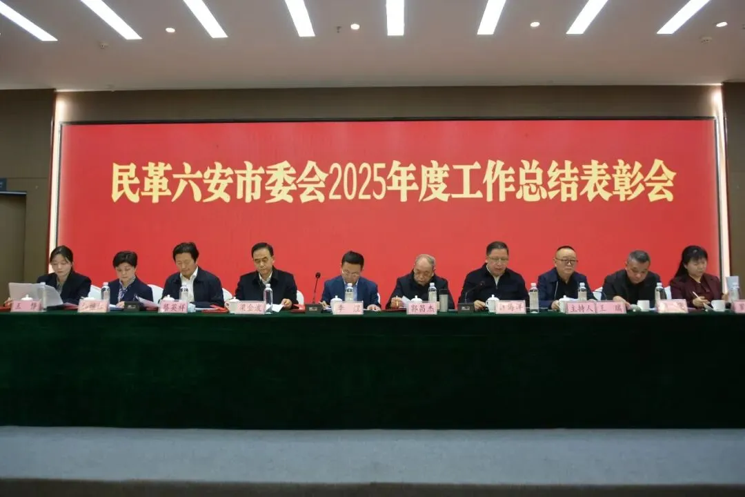 2026年3月22日,民革六安市委会召开2025年度工作总结表彰会。中共六安市委常委、统战部部长、市政协党组副书记李煜,中共六安市委统战部常委副部长梁金波应邀出席。市委会原主委郭昌杰出席会议。市委会主委汪海洋,副主委蔡英祥、王瑞、杨继红,秘书长王静,市委会委员参加会议。王瑞主持会议。