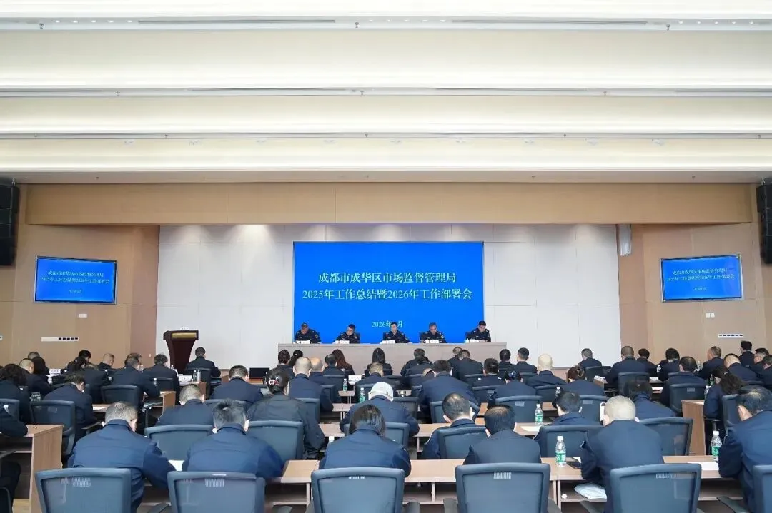 3月23日,成华区市场监督管理局组织召开2025年工作总结暨2026年工作部署会。会议坚持以习近平新时代中国特色社会主义思想为指导,深入贯彻党的二十大和二十届二中、三中、四中全会及习近平总书记对四川工作系列重要指示精神,全面落实党中央国务院、省委省政府、区委区政府决策部署,紧扣市场监管总局和省、市市场监管局工作安排,总结 2025 年工作,分析研判当前形势,安排部署 2026 年重点工作。局党组书记、局长贺勇作主题报告,在家班子成员及在编干部职工参加会议。