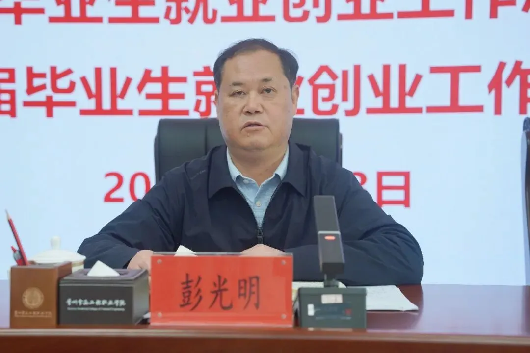 彭光明指出,就业是最大的民生,是学院办学质量的核心检验标准,更是关乎千家万户、关乎地方发展、关乎教育强国建设的重要工作。要务必认清形势,切实增强就业创业工作的政治责任感和现实紧迫感。在全院上下共同努力下,2025届毕业生保持了较高的就业水平。但更要清醒认识到,2026届就业工作面临的形势更复杂、任务更艰巨、要求更严格。必须站在讲政治、保民生、促发展的高度,树立和践行正确政绩观,把就业工作作为“一把手工程”抓牢抓实,以“时时放心不下”的责任感和“事事落实到位”的执行力,主动适应新形势、迎接新挑战,把就业工作的各项要求落到实处。