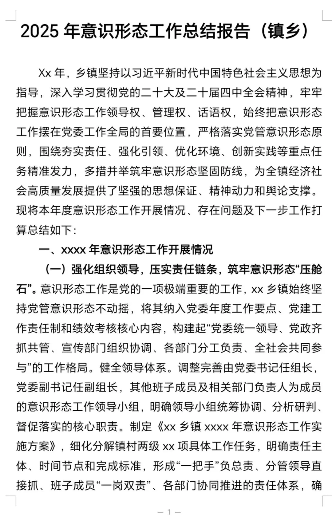 >(乡镇)2025年意识形态工作总结报告